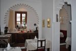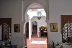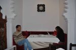 MEDINA, TELA Y COBRE es el titulo de esta exposición en Blanco Riad, en ella convergen 3 artistas: Mery Pais, Amine Asselman y Mª Xosé Domínguez. Mery y Amine vienen a colocar las obras. Decidimos donde van a lucir mejor, por la luz, por el mensaje, por la combinación de colores y texturas. Mª Xosé nos manda muchos recuerdos. Hace poco expuso en Martil su obra “XP SIRENAS?”y hoy nos deleita con un trocito de su arte y acompaña a estos dos jóvenes artistas en su primera exposición.El título que le dan me despierta mucha curiosidad. Les pregunto….MEDINA? por la medina….me dice Amine, Mery me dice que espere, lo piensa…recapitula. Medina porque es el punto en común que tenemos los tres artistas que exponemos hoy. Además, estando en Blanco Riad, teníamos que crear sobre la Medina.TELA? porque unas cuantas obras están hechas con tela. Porque la tela refleja la feminidad y tanto María Xosé como Mery enfocan su obra en torno a la feminidad. Y en Marruecos hay telas increíbles. La tela en Marruecos está muy presente en la vida cotidiana, por ejemplo, hay un cuadro simulando cortinas y pasamanería y es que…pensándolo bien…los salones marroquíes, las mesas, las cortinas en los coches….la tela y la pasamanería están muy presentes en la cultura.COBRE, le pregunto a Amine, que ha enmarcado todas sus fotos en anchos marcos de cobre, por su representatividad en Marruecos, porque se trabaja a mano, el cobre es un metal que le da valor a sus fotos y es un material que cambia con el tiempo, tiene vida, va cambiando, como la Medina. Se oxida, se envejece, es frágil, es bonito, es cambiante y embellece.