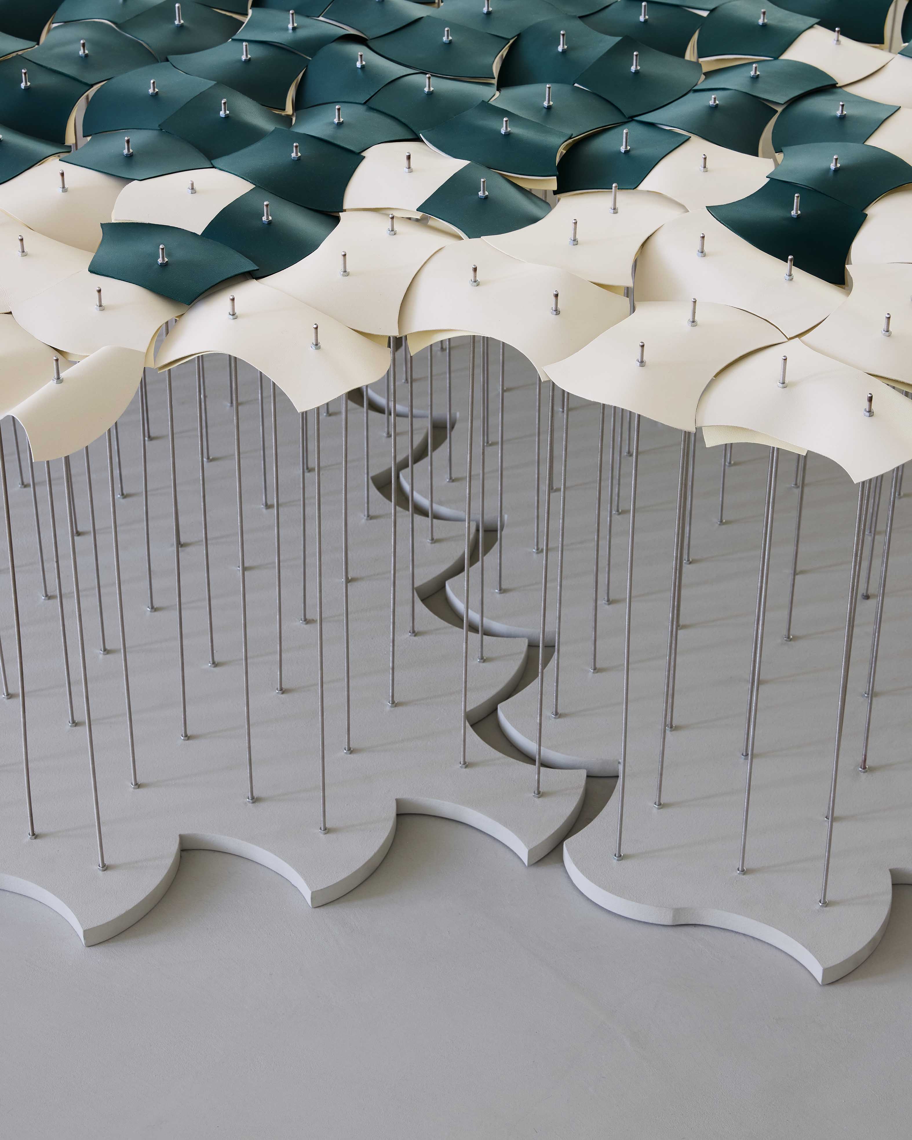 Each one-of-a-kind piece honours Bottega Veneta’s founding principles of craft and creativity. From ceramic sheets and volcanic stone to works inspired by Emirati Areesh and palm-frond braiding, the works dialogue with Intrecciato through different local materials, regional craft, and weaving traditions. Three pieces also include reserve leather from the Bottega Veneta atelier.