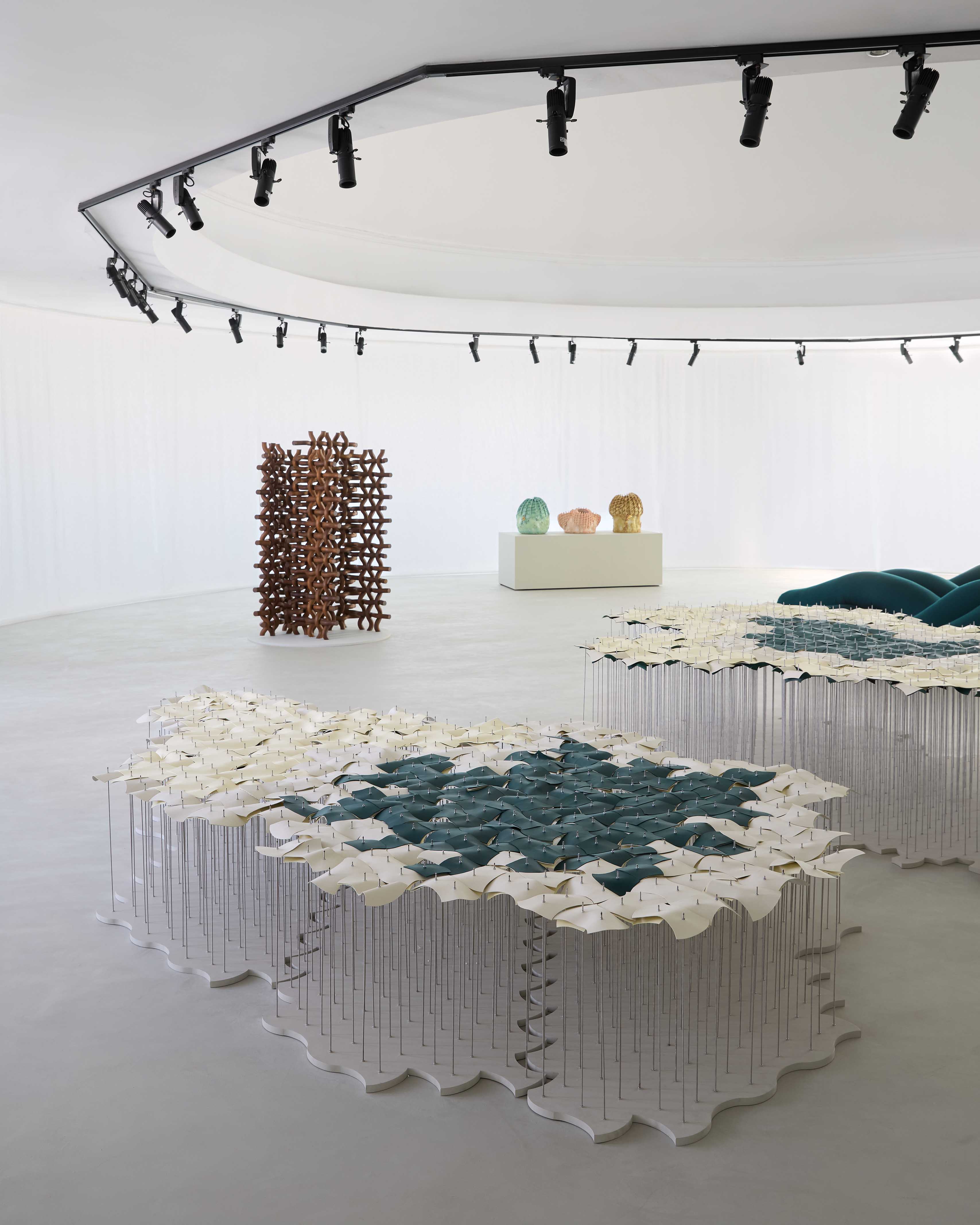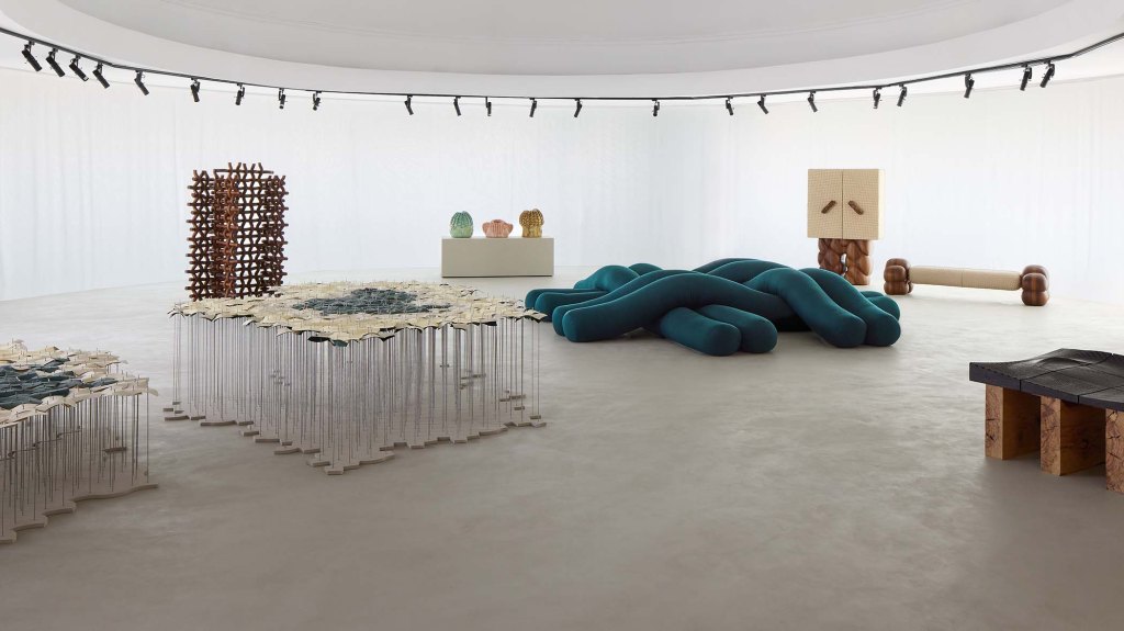 “The commissioned works reflect a wide variety of interpretations that honor the Intrecciato weave, while also carrying gestures from the designers’ own personal styles,” says Rana Beiruti. “Some of the works draw on regional heritage and weaving traditions, while others interpret weaving beyond its physical expression—representing the interlacing of ideas, narratives, and cultures. Together, “Destinations” exemplifies dedication to craft, respect for artisanal communities, and creativity born from tradition.”