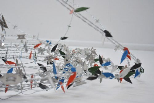 Propuesta de mosaicos tradicionales Marroquies. Alambre de acero. Motivos recortados a mano en chapa de aluminio. (dimensiones variables)