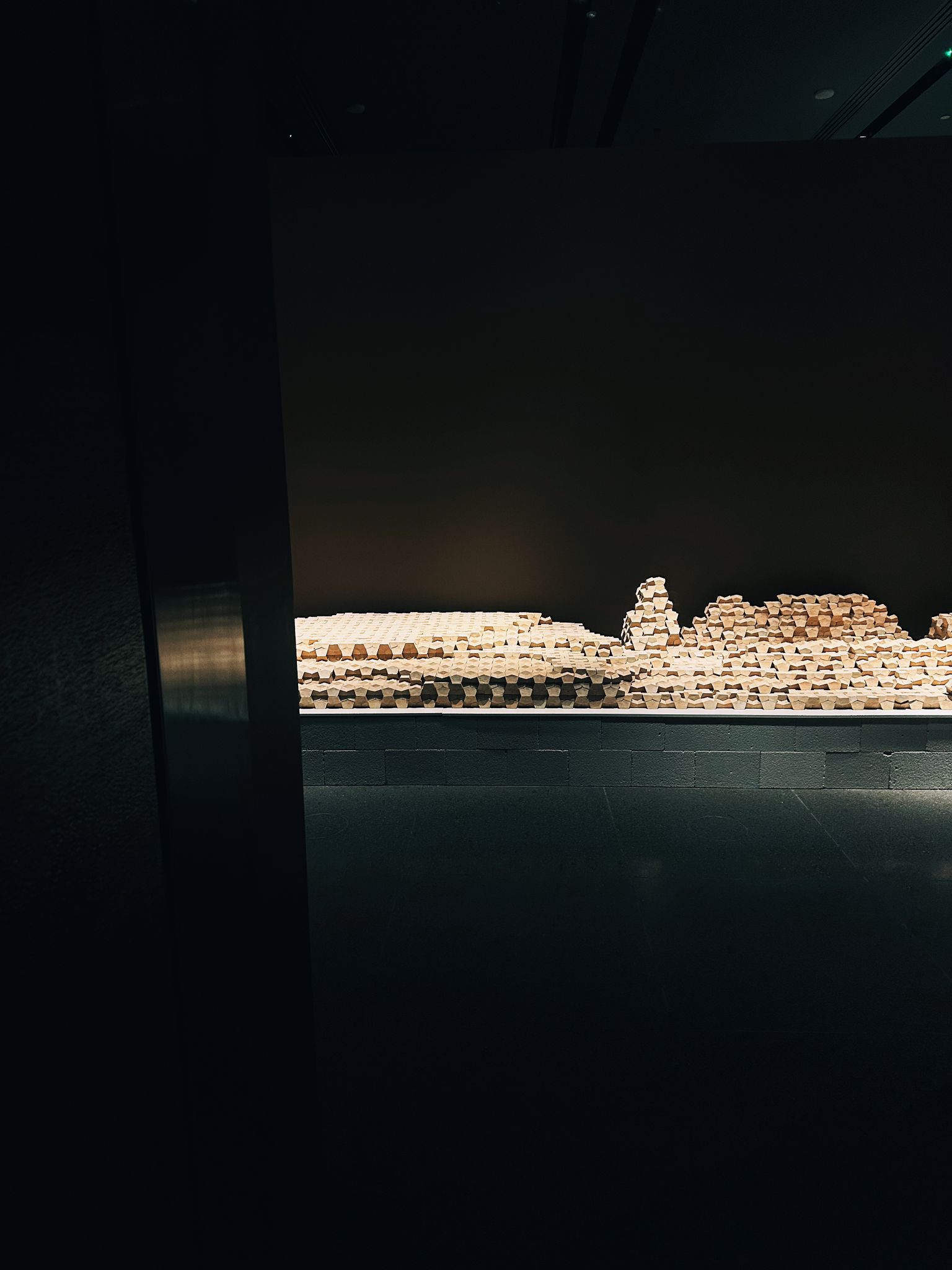 The main artwork is composed of approximately 20,000 identical pieces of 6x4x4cm in terracotta, which, thanks to their rotation in space, fit together to form an organic geometric body, which reminds us of the way in which crystallizations are produced in nature.
