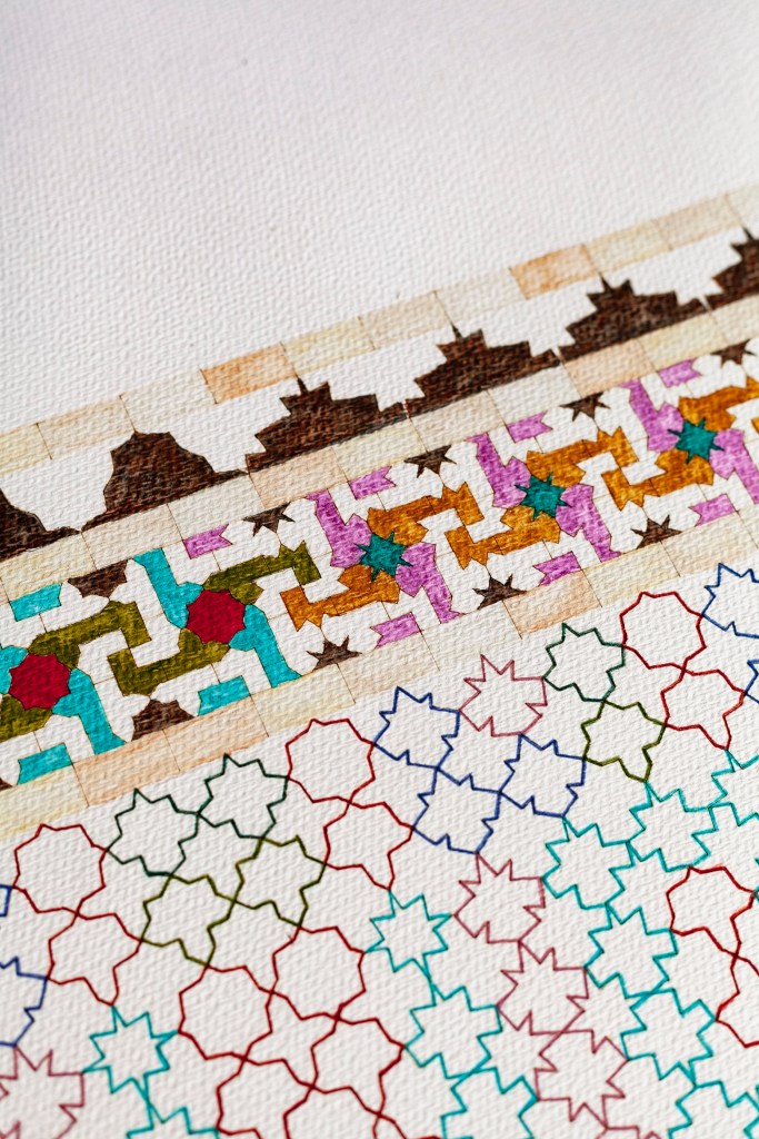 Laser engraved paper, watercolor painting and drawing